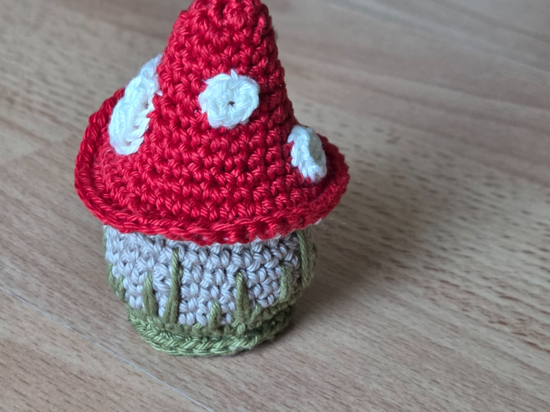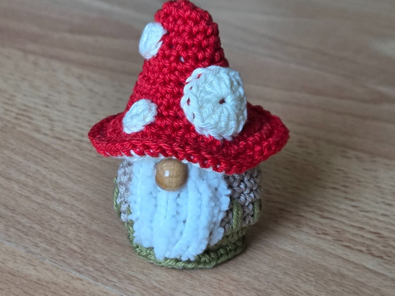 Ein süsser kleiner Wichtel in Form eines Fliegenpilzes als Mitbringsel oder für die eigene Deko.